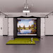 A highlight of this package is the retractable impact screen, specifically designed for garage installations. The impact screen is constructed from high-quality material capable of withstanding the force of repeated shots from real golf balls. Its retractable design allows for easy setup and safe storage near the ceiling when not in use, enabling the garage to return to its regular function when the simulator is not in operation. This versatility makes it an ideal solution for those looking to optimize their available space.